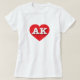 Ce t-shirt est doté d'un coeur rouge vif contenant les lettres coques supérieures blanches en gras AK, l'abréviation officielle de l'état de l'Alaska.