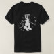 Cette image a une silhouette du lapin de Alice's Adventures in Wonderland tenant une montre de poche avec des images de visage d'horloge dans l'arrière - plan.
