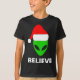 T-shirt Alien Green Face Christmas Santa Hat Believe