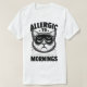 Illustration humoristique d'un chat portant un masque de sommeil et ayant l'air grincheux, avec le texte "ALLERGIQUE AU MATIN" ci-dessus. Le design est simple et attrayant, avec un message clair qui séduira les amoureux de les chats et tous ceux qui luttent pour sortir du lit le matin.