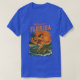 This kitschy throwback beach art is 'only in Florida' energy! A wild pin-up catches a wave as she rides an alligator like a surfboard. The surf beach at sunset scene has bold orange and red colors, complete with palm trees blowing in the tropical breeze. Add a little Florida chaos to your outfit with this fun t-shirt. | Vivid printing is recommended for non-white garments.