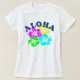 Aloha dans la langue hawaïenne signifie affection, amour, paix, compassion et miséricorde. Depuis le milieu du 19ème siècle, il sert aussi de salut anglais pour dire au revoir et saluer. Actuellement, il est surtout utilisé dans le sens du bonjour. Cette chemise pour femmes contient un design coloré de fleurs hawaïennes en rose, jaune, vert et bleu. Graphique très tropical avec un effet usé sur elle.