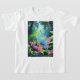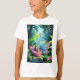 Une petite fille et un papillon aux ailes irisées perchés sur une fleur géante dans une jungle luxuriante, accompagnés d'un toucan coloré. De grandes fleurs feuilles et vibrantes les entourent, créant une scène magique et fantaisiste. Photoshop Art numérique CS6