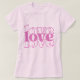 "Love" trois fois dans différentes nuances de rose. Le milieu "amour" est un moyen solide rose. Le haut "amour" est en lettres bulles en magenta et le bas "amour" est aussi en lettres bulles en rose rose.