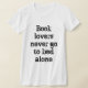 T-shirt d'amusement pour le lecteur dans votre vie avec la citation : Les amoureux des livres ne vont seul au lit jamais. La police, la taille de la police et la couleur sont personnalisables