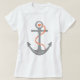 Débardeur de la culture flottante marine gris et corail pour l'été avec une ancre grise avec corail orange coeur amour et corde.