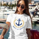 Une ancre nautique conçue sur mesure, des feuilles de lauriers de style or et une étoile dorée avec et votre nom personnalisé ou nom de bateau sur un t-shirt blanc pour femmes. Fait un grand cadeau.