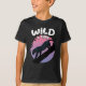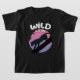 Illustration d'une silhouette de panthère noire marchant sur un arbre de jungle devant un coucher de soleil rose. Texte ajouté : Wild and Free. Design graphique pour les amoureux de la nature.
