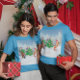 T-shirt Animaux de dessin animé dansant près d'un sapin de