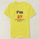 Je suis de 27 ans d'aways d'être la 30ème conception humoristique de l'anniversaire 57 qui semble raser quelques années outre de votre âge avec le lettrage très grand "j'ai 27ans années et puis que du lettrage beaucoup plus petit des "à partir d'être 57". Fait un grand 30ème cadeau d'anniversaire.