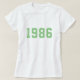 T-shirt de l'année de naissance sur mesure "1986" élégant et tendance dans une typographie moderne minimaliste en bloc style collégial en vert. Le cadeau d'anniversaire parfait pour célébrer votre année de naissance, d'établissement et de vintage qui peut être facilement personnalisé avec votre propre année.