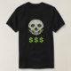 Anti Big Pharma montre un crâne aux yeux rouges qui s'estompent, des aiguilles croisées et des signes en dollars. Graphique cool avec un message fort.