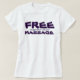 Thérapeutes de massage : Ce tee-shirt, conçu par Susan M. Epperly de Tiger Lily Studios, peut vous faire rire, mais aussi un nouveau client ou deux! Et ce design est aussi PERSONNALISABLE pour que vous puissiez ajouter votre nom d'entreprise, vos coordonnées, et / ou logo à l'arrière de la chemise! Design ©2015 Susan M. Epperly, Tiger Lily Studios, LLC Considérons aussi notre version de ce design sur la tache cachant les tee - shirts noirs et foncés : http://www.zazzle.com/funny_customizable_free_oil_application_w_massage_tshirt-235757749012274538 N'oubliez pas de consulter la gamme complète de super vêtements et autres cadeaux de Tiger Lily Studios pour les professionnels du massage. (www.TigerLilyStudios.com) http://www.zazzle.com/TigerLilyStudios?rf=238891780775066757