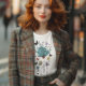T-shirt Aquarelle bleu Fleur Papillons d'art Nom personnal