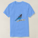 Un pot de Steller. Ce remarquable oiseau bleu est représenté en aquarelle et se trouve sur une branche épaisse. L'oiseau regarde en arrière ce qui crée une pose intéressante.