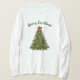 Cette chemise de vacances présente un design festif qui saisit toute la joie de la période des Fêtes L'arbre de Noël est orné d'ornements dorés et d'un arc de fête rouge. Personnalisé cette chemise avec vos propres mots ou acheter comme montré avec Joyeux Noël.