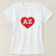 Ce t-shirt est doté d'un coeur rouge vif contenant les lettres coques supérieures blanches en gras AZ, l'abréviation officielle de l'état de l'Arizona.