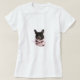 octobre est mois de conscience de cancer du sein. montrez votre appui utilisant ce T-shirt. betty, un bouledogue français, modèles un ruban rose enroulé autour de elle
