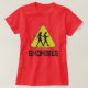 Un design cool et drôle avec une enseigne avec deux personnes qui se baladent en regardant leurs smartphones comme des zombies et la citation "Attention aux mombies".