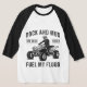 Graphique d'un quad d'ATV de style grincheux, avec le slogan audacieux "Rock and Mud Fuel My Blood - ATV Quad Squad". Le design est en une seule couleur avec un regard fatigué et fatigué pour une attitude supplémentaire.