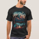 Un design de style rétro cool pour les amateurs de camping avec un paysage de montagne au bord d'un lac la nuit avec une tente.