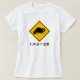Attention à tanuki ! Cette chemise est ornée d'une drôle d'enseigne japonaise, souvent placée le long des routes comme un avertissement aux automobilistes où les chiens de raton laveurs ont tendance à traverser la rue. La légende en bas est la phrase japonaise "Tanuki ni Chuui", qui signifie "Attention à Tanuki."