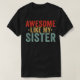 Introducing the "Awesome Like My Sister" tee, a fun and stylish graphic top perfect for showing off your unique personality. Made with soft and comfortable cotton blend fabric, this shirt is sure to be a favorite in your wardrobe. With its eye-catching design and playful slogan, this tee is a great way to express your individuality and celebrate sisterhood.