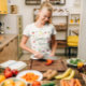 Enfant local ! Le baby shower des fermiers avec des fruits et des légumes. Caractéristiques carottes orange, poivrons jaunes, tomates, tranches de pastèque, fraises et bleuets