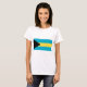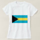 Le drapeau des Bahamas est orné d'un triangle équilatéral noir sur la gauche représentant l'unité et la détermination du peuple des Bahamas. Le triangle est orienté vers trois bandes de largeur égale symbolisant des zones de ressources naturelles; deux rayures aquamarines au sommet et au bas du drapeau représentant la mer et une bande d'or représentant la terre. Le drapeau a été adopté le 10 juillet 1973.