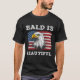 Le dessin montre un aigle chauve devant le drapeau américain et la citation "BALD is BEAUTIFUL".