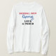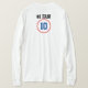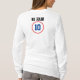 Fun Baseball Maman Cheering Loud et la typographie fière en rouge, bleu et noir. Le ventilateur n° 1 est en noir sur l'arrière (laissez ou insérez le nom de l'équipe ou le nom de famille). Cercle géométrique rouge avec numéro de joueur #10 en bleu. Cliquez sur Personnaliser pour modifier les couleurs de texte du calque modèle. Design original par TamiraZDesigns.
