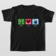 J'aime jouer de la batterie. Je suis un rocker. Un signe de paix, un coeur et une batterie sur un t-shirt de tambour pour enfants.