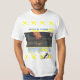 On the back, the yellow cross pattern repeats, overlaid with a mysterious binary code design that appears to be dripping or melting, adding a cryptic, tech-inspired element to the overall look. This t-shirt masterfully combines history, art, and urban culture for a truly standout piece.