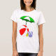 Plage amusante ou piscine à thème art d'une boule de plage rouge, parasol vert, sandales de vacances et huile de bronzage sur un arrière - plan bleu aquatique avec vagues bouclées.