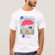 Chemises de plage, vêtements et produits de plage à clochettes avec l'illustration fantaisiste de l'homme et de la femme sous un parasol au bord de l'océan sur la plage. T-shirts et articles de plage.