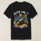 Ce t-shirt noir présente un crocodile de bande dessinée se déplaçant sur un transat de plage, avec lunettes de soleil et boisson à la noix de coco en paille. Des palmiers et un coucher de soleil sont visibles en arrière - plan. Le texte "BITE ME ?" est archi au-dessus du crocodile, tandis que "NE ME TEMPT PAS." est écrit ci-dessous, créant une odeur humoristique.
