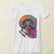 Ce design saisissant de T-shirts présente une illustration complexe d'un crâne humain portant de grands écouteurs à l'oreille. Le crâne est dressé sur un fond vibrant de couleurs tourbillonnantes et de motifs floraux, créant une atmosphère dynamique et énergique. Les teintes vives, principalement dans les tons orange, rose, violet et bleu, apportent une touche moderne au symbole classique du crâne, suggérant des thèmes de musique, de vie et de créativité qui se mêlent