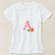 Joli monogramme rose avec fleur sur T-shirt blanc.