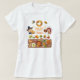 T-shirt avec une illustration d'action de grâce avec un pèlerin et natif avec de nombreux dessins thématiques d'action de grâce. Une table avec un festin glorieux de dinde, des feuilles d'automne et une couronne. Le texte dit "Merci beaucoup".