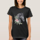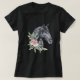 Un t-shirt avec une belle illustration d'une tête de cheval noire avec un embellissement floral fantaisie par son cou. Peinture animale élégante et classe.