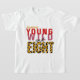 Turn eight into a wild celebration with this eye-catching t-shirt! The design proudly proclaims "Young Wild and Eight," with "Young Wild" in a vibrant red and pink font, and "and Eight" rendered in a fierce leopard print. This shirt is an ideal way to highlight a special milestone birthday for any young girl who embraces her adventurous spirit. It's a fun, fashionable, and festive choice for birthday parties, outings, or just everyday wear, ensuring she feels celebrated and confident.