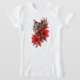 T-Shirt Black and White Cat with Bright Red Blooms Toddler