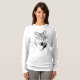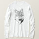 Classic black and white portrait drawing of a wolf's face on stylish grey top.