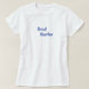 Sale Surfer blanc tee surfer avec un texte bleu moyen. Frappez la plage avec votre planche dans cette chemise de plage classique design Ken-Ray unique.