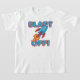 Notre design Blast Off est un design génial pour les enfants de tous âges qui aiment l'espace et les navires de roquettes, dispose d'un navire de roquette bleu et rouge avec des gaz d'échappement flamboyants et texte qui dit Blast Off! Blast Off rocket ship T-shirts, bibs, couvertures, cartes, autocollants, tasses, sacs, coussins, horloges murales, et bien plus encore!