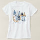 Chemise Christian Joyeux Noël Femme avec un design typographique et des arbres de Noël bleus modernes, croix et nom de famille personnalisé. Personnaliser facilement le nom - Kate Eden Art