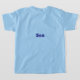Voici un T-shirt Son bleu clair. Le mot Son est sur le t-shirt en bleu foncé. Son est sur le devant et le dos du t-shirt. Le mot est centré. Le t-shirt est en coton.