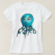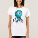 Un joli tee de femme au poulpe avec un dessin à l'encre de couleur numériquement représentant une créature caricaturale bleue marine avec de grands yeux et des cils, et de minuscules tentacules, souriant joyeusement.