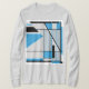 Des formes et des lignes audacieuses et géométriques de bleu moyen, gris et blanc avec des éléments noirs se combinent pour un design abstrait, inspiré du style moderne du milieu du siècle. Photo ici sur un t-shirt à manches longues "cendres", avec d'autres couleurs et styles disponibles. C'est un look artistique et décontracté, mais classe pour égayer votre tenue décontractée et quotidienne, que vous soyez à la maison ou entre amis, en jouant au sport ou en vous promenant en ville. Étant donné que la chemise donne une ambiance artistique et un style individualisé, cela contribue à un sentiment d'être "assemblé", ce qui peut être particulièrement stimulant pour ceux qui travaillent à distance et/ou passent beaucoup de temps à la maison.