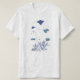Stingrays et poissons nageant à propos d'un T-shirt imprimé graphique de récif corallien. Design graphique à thème océanique bleu.